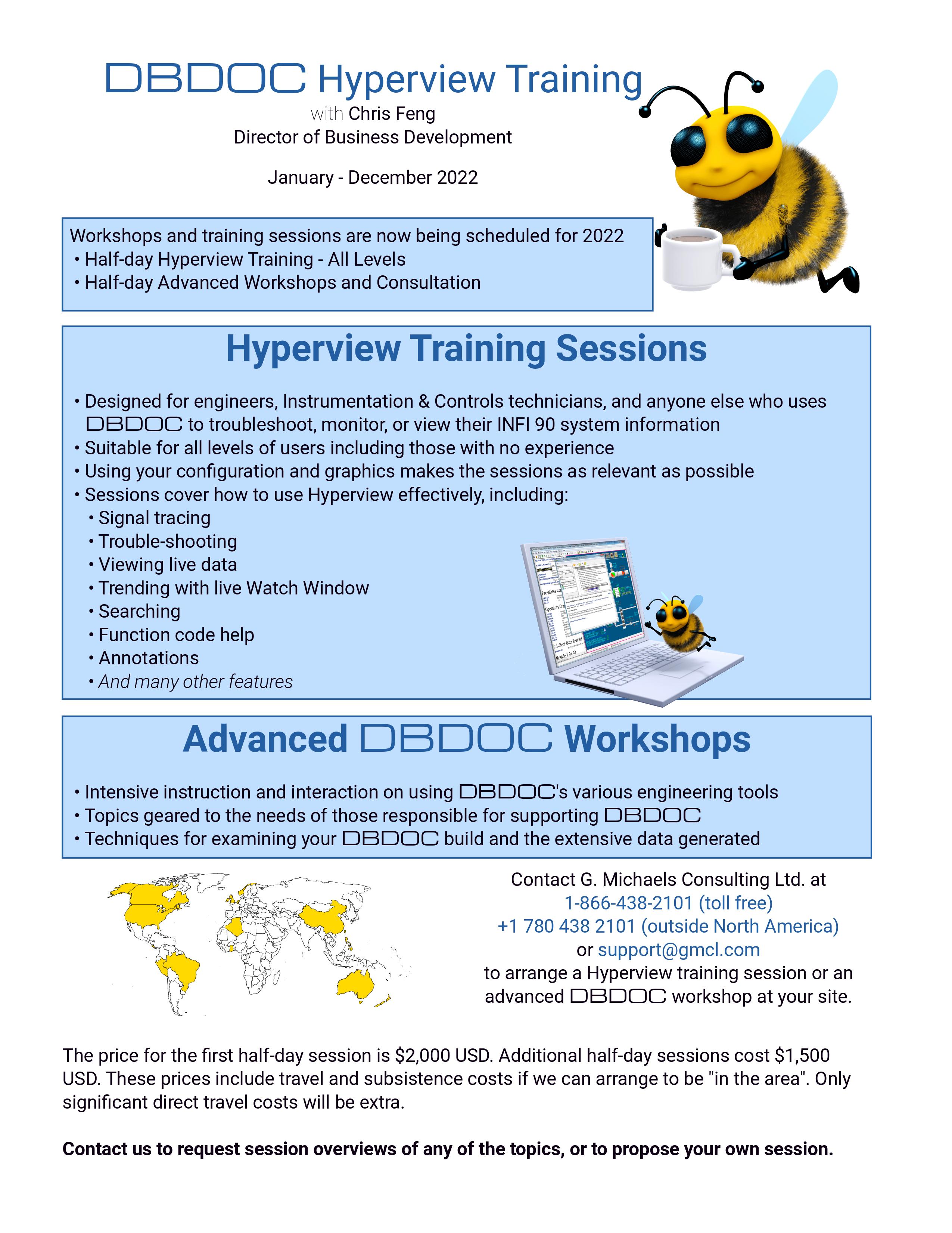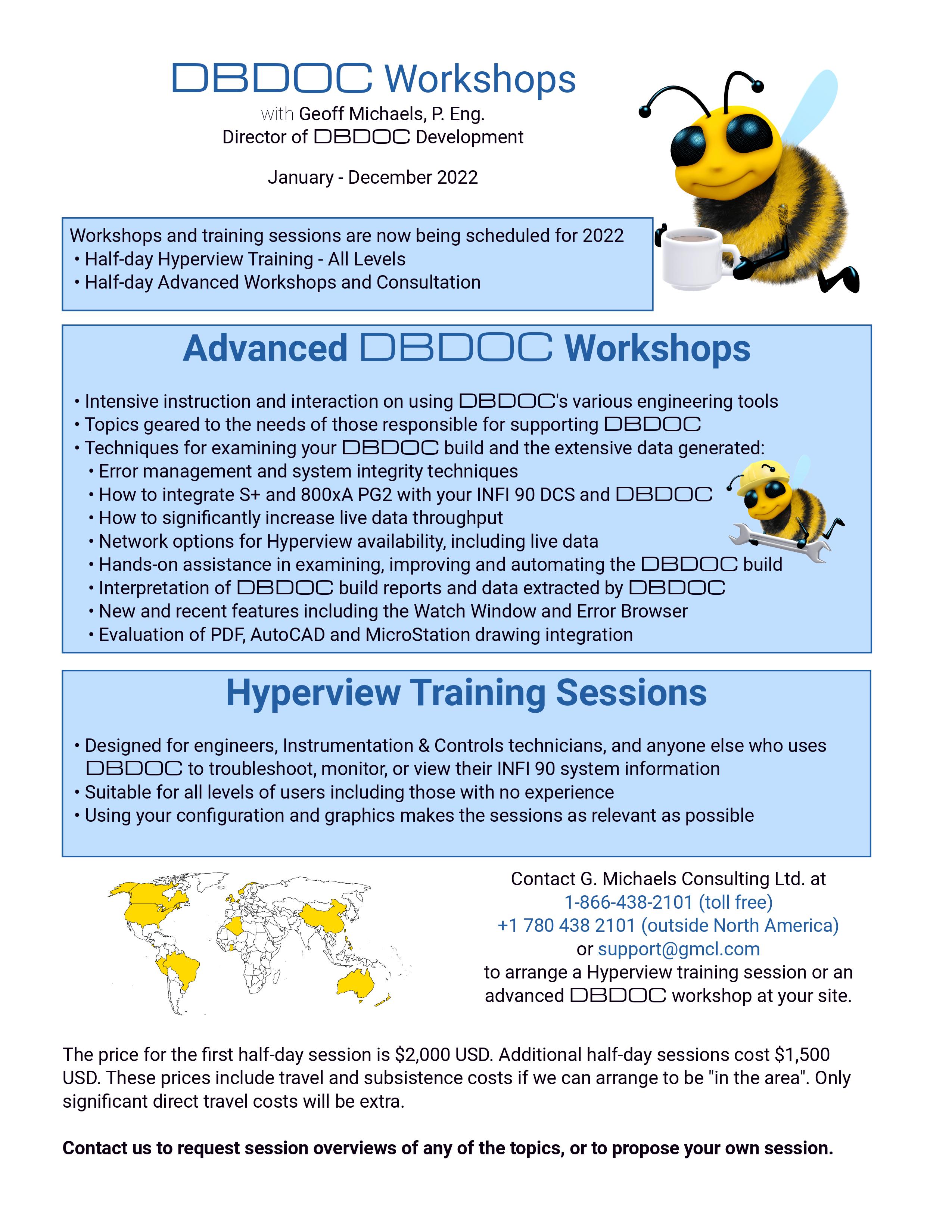 Contact G. Michaels Consulting Ltd toll free at 1-866-438-2101 in the U.S. and Canada or +1 780 438 2101 outside U.S. and Canada to arrange a DBDOC workshop at your site.